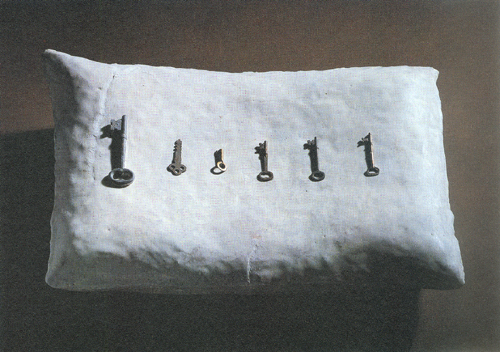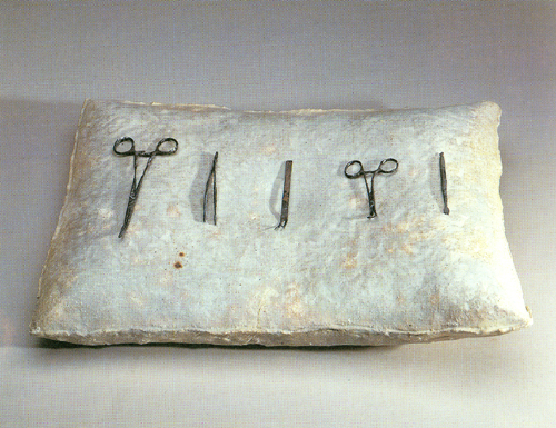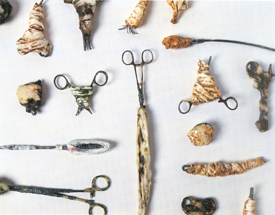 ±×³à´Â ´Ã ²ÞÀ» ²Û´Ù. ±×·¯³ª ±× ²ÞµéÀº ´ëºÎºÐ ºÒÄèÇÑ ÀϵéÀ» ¿¹°ßÇÏ´Â °ÍµéÀÌ´Ù. ¼Èñ¼ö´Â ¿©·¯ °³ÀÇ ¹è°³½Ã¸®Áî Á¦ÀÛÀ» ÅëÇÏ¿© ¹«ÀǽÄÀÇ ÀǽÄÀûÀΠǥÇöÀ» º¸¿©ÁØ´Ù. ±× Áß¿¡¼µµ Âõ±âµí ¶Õ·ÁÀÖ´Â ¹è°³ÀÇ ±¸¸ÛÀº ºÒ¾È°ú °í³ú°¡ ±×´ë·Î ³ªÅ¸³ª´Â µí ÇÏ´Ù. ÀüÀï Áß¿¡ ¹«¼öÈ÷ ÃÑÀ» ¸ÂÀº °Í °°Àº ´À³¦ÀÇ ÀÌ ÀÛǰ ÀÌÈÄ Á¦ÀÛµÈ °ÍµéÀº ±¸¸ÛÀÌ ¶Õ·Á ÀÖÁø ¾ÊÁö¸¸ ¶Ç ´Ù¸¥ ºÒ¾È¿ä¼ÒµéÀ» Æ÷ÇÔÇϰí ÀÖ´Ù. ¹è°³ À§¿¡ ³õ¿©ÀÖ´Â Á¶±â, ÀÌ»¡, ¼ö䱸¸Û µîÀÌ ±×°ÍÀÌ´Ù. ÀÌ ½Ã¸®Áî¿¡ µîÀåÇÏ´Â »ç¹°µéÀº º»·¡ °¡Áö°í Àִ ǥ¸éÀûÀÎ Àǹ̿ʹ ´Ù¸¥ ÀáÀçÀǽĿ¡ ±Ù°ÅÇÑ À̹ÌÁöµé·Î ±¸¼ºµÇ¾î ÀÖ´Ù. À̰͵éÀº ±¸Ã¼ÀûÀÎ »ó¡¹°·Î¼ ³ªÅ¸³ª´Â ±×³àÀÇ ¹«ÀǽÄÀÓ°ú µ¿½Ã¿¡ ²ÞÀÇ ³»¿ë°úµµ ¿¬°üµÇ¾î ÀÖ´Ù. ¼ö¼ú¿ë °¡À§, ¸Þ½º, Çɼ µîÀº ¾Õ¿¡ Á¦½ÃÇÑ ºÒ¾È¿ä¼Ò¿Í ¸Æ¶ôÀ» °°ÀÌÇϱâ´Â ÇÏÁö¸¸ ¿¼è¿Í ÇÔ²² ¶Ç ´Ù¸¥ Àǹ̷εµ »ç¿ëµÇ¾ú´Ù. ÀÌ ±Ý¼Ó¿ÀºêÁ¦µéÀº °è¼ÓµÇ´Â ¾Ç¸ù°ú ºÒ¾È ¼Ó¿¡¼ Å»ÃâÇϰíÀÚ ÇÏ´Â ¿å±¸¸¦ ÇØ¼Ò½Ã۱â À§ÇÑ µµ±¸µéÀÌ´Ù.