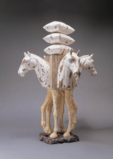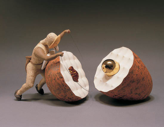 ±×ÀÇ ¸ù»ó¼¼°è´Â ÀÛ°¡ ÀÚ½ÅÀÇ »çÀû(ÞçîÜ)ÀÎ Çö½Ç¿¡ »Ñ¸®¸¦ µÎ°í ÀÖÁö¸¸ µ¿½Ã¿¡ ÀηùÀÇ º¸ÆíÀûÀÎ °æÇè¿¡ ´ëÇÑ Ç¥ÇöÀ̱⵵ ÇÏ´Ù. Clay Studio¿¡ ÇöÀç Àü½ÃÁßÀÎ ±×ÀÇ ÀÛǰ Áß »ó´ç¼ö´Â ¸»(Ø©)ÀÇ À̹ÌÁö¿Í ¿¬°üÀ» ¸Î°íÀÖ´Ù. ÀÛ°¡ ÀÚ½ÅÀÌ ¸»Çϱ⸦, "...³ª ÀÚ½ÅÀÌ ¸»ÀÇ ÇØ¿¡ ž±âµµ ÇßÁö¸¸ µ¿½Ã¿¡ ¸¹Àº ³ª¶óµéÀ» ¿©ÇàÇÏ°Ô µÇ¸é¼ ³ª´Â ¸»À» ¾Æ¿¹ ³ª ÀÚ½ÅÀÇ ¸ð½À, °¨Á¤, °æÇè µîÀ» Ç¥ÇöÇÏ´Â ÀºÀ¯ÀÇ ¼ö´ÜÀ¸·Î Â÷¿ëÇÏ°Ô µÇ¾ú´Ù." ¿ì¸®´Â ÀÌ·¯ÇÑ ±×ÀÇ À̾߱⿡¼ Çö½ÇÀûÀÎ ¸éÀ» ¹Þ¾ÆµéÀÌ°Ô µÈ´Ù. ¶ÇÇÑ µ¿½Ã¿¡ ±×ÀÇ ÀÛǰÀ» ÅëÇØ¼ ¸Å¿ì »ó¡ÀûÀÎ ¼³¸íÀ¸·Î °¡µæÇÑ <À̾߱â>¿Í ¸¸³ª°Ô µÈ´Ù. ¿¹¸¦ µé¾î ÁÙ»ç´Ù¸®¸¦ ´Ã¾î¶ß¸° °í´ëÀÇ Æ®·ÎÀÌÀÇ ¸ñ¸¶¶óµçÁö, Àü¼³ ¼Ó ºÀȲÀÇ ¾Ë¿¡ ¾ôÈù À̾߱â¶óµçÁö ¶Ç´Â ÇÏ´ÃÀ» ¼ö³õÀº »ç¶÷¿¡ ´ëÇÑ ¼»çÀûÀΠǥÇöµéÀÌ ±×°ÍÀÌ´Ù. ÀÌ·¯ÇÑ À̹ÌÁöµéÀº ±¸½Ä(ÏÁãÒ)ÀÇ µ¿ÈÀ̱⵵ ÇÏ´Ù. ÀÌó·³ ÀüÀûÀ¸·Î °¡½Ä°ú Á¶¼Ò ±×¸®°í ³Ã¼ÒÁÖÀǷκÎÅÍ ¹þ¾î³ª °è¸ùµÈ »ó»ó·ÂÀ¸·Î °¡µæÇÑ ±×·± ÀÛǰÀ» ¸¸³ª´Â ÀÏÀÌ ¾ó¸¶³ª Áñ°Å¿î ÀÏÀΰ¡? ±×¸®°í ±×ÀÇ Á¤±³ÇÏ°Ô ¸¸µé¾îÁø ÀÛǰÀº °í¾çµÈ ÀåÀÎÁ¤½Å ±× ÀÚü¸¦ ȸº¹ÇϰíÀÚ ÇÏ´Â ÀÚ½ÅÀÇ ½Å³äÀ» ±Ã±ØÀûÀ¸·Î ´ã°í ÀÖ´Ù.